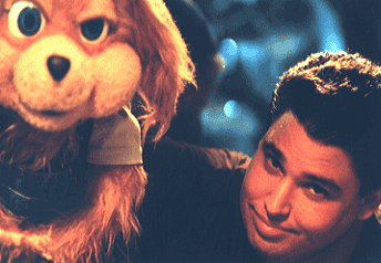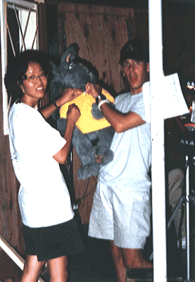 Jim Sloane, puppeteer for Benny the Bunny puppet, receives some Production Assistance from Vivian Hsu.